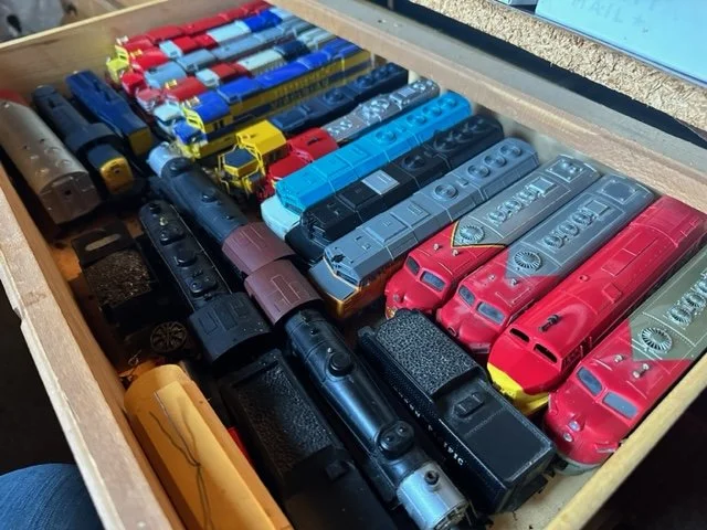 Tonka, Lumar, Tin Friction, Wyandotte, Marx, cast iron, stage coaches, Cox powered car, John Deere, Allis Cambers, Oliver, Lionel, Sante Fe, Burlington, Rock Island, Bandai, baseball cards, Multiple Prairie Grain signs plus other signs