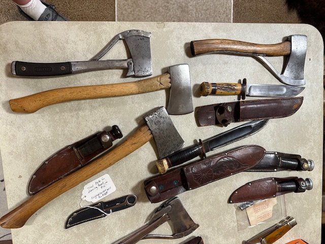 supplies, traps trapping bags, deer cart, hide stretchers, blind, Buck pocketknives, Bow and