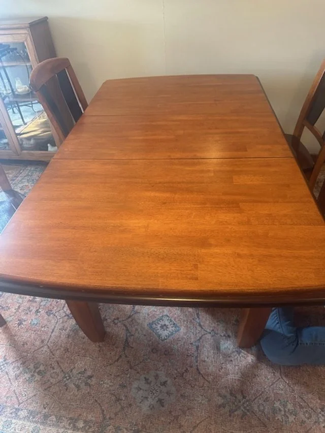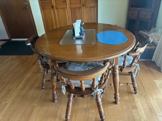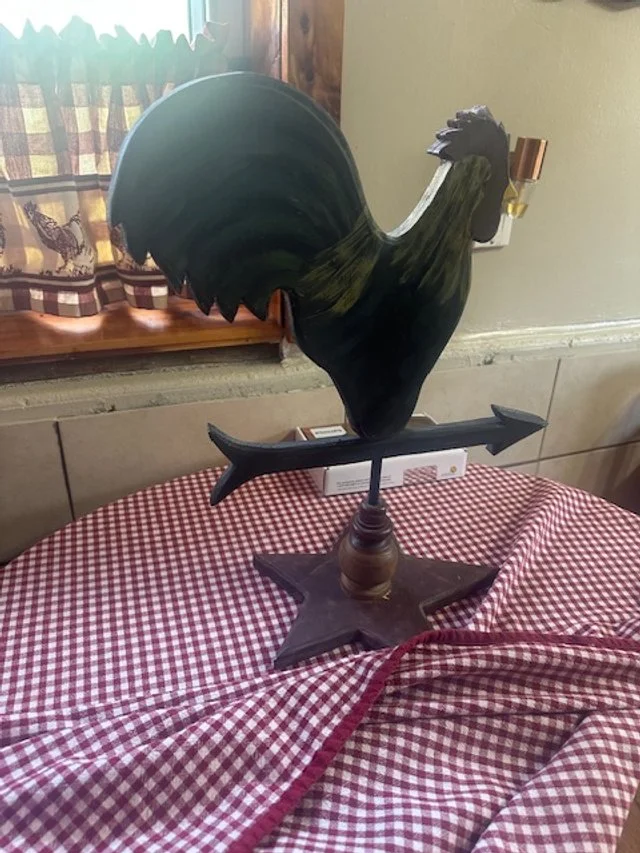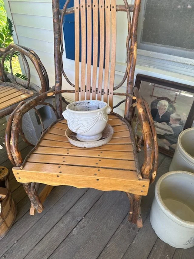 clock, trunk, quilt tops, canning jars, loveseat, Rocker, leather rocker, table and chairs, dresser,