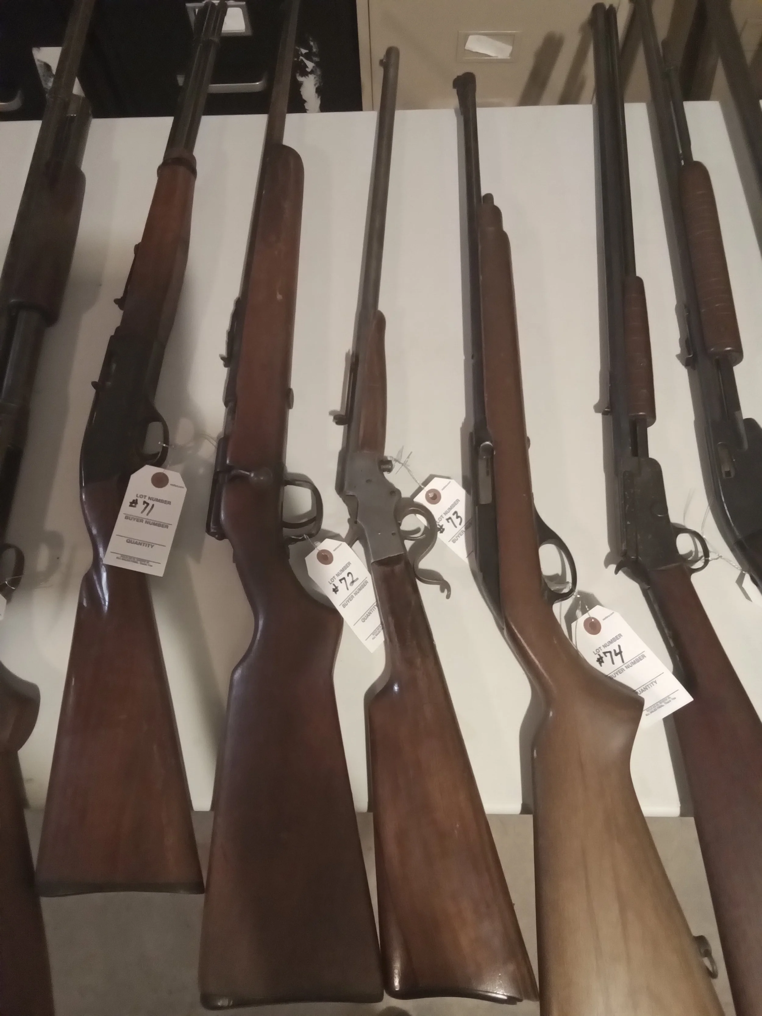 Rifles: Multiple 22's - Stevens - Remington - Winchester - Hamilton Bicycle Rifle (wire frame)
